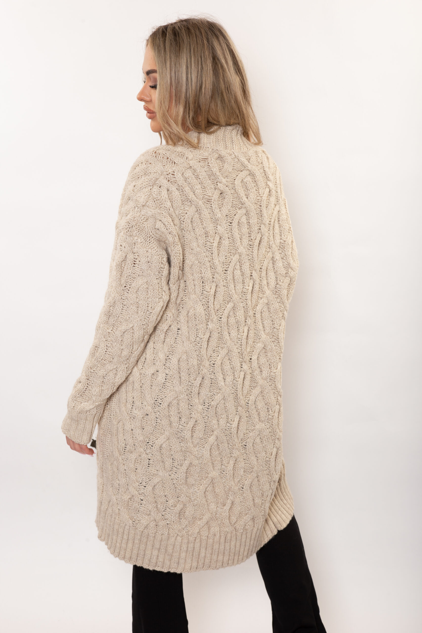 Długi kardigan o wypukłym splocie.