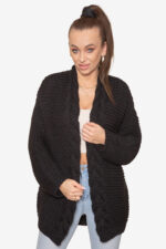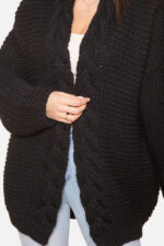 Długi kardigan z ozdobnym splotem, wykończony warkoczem.