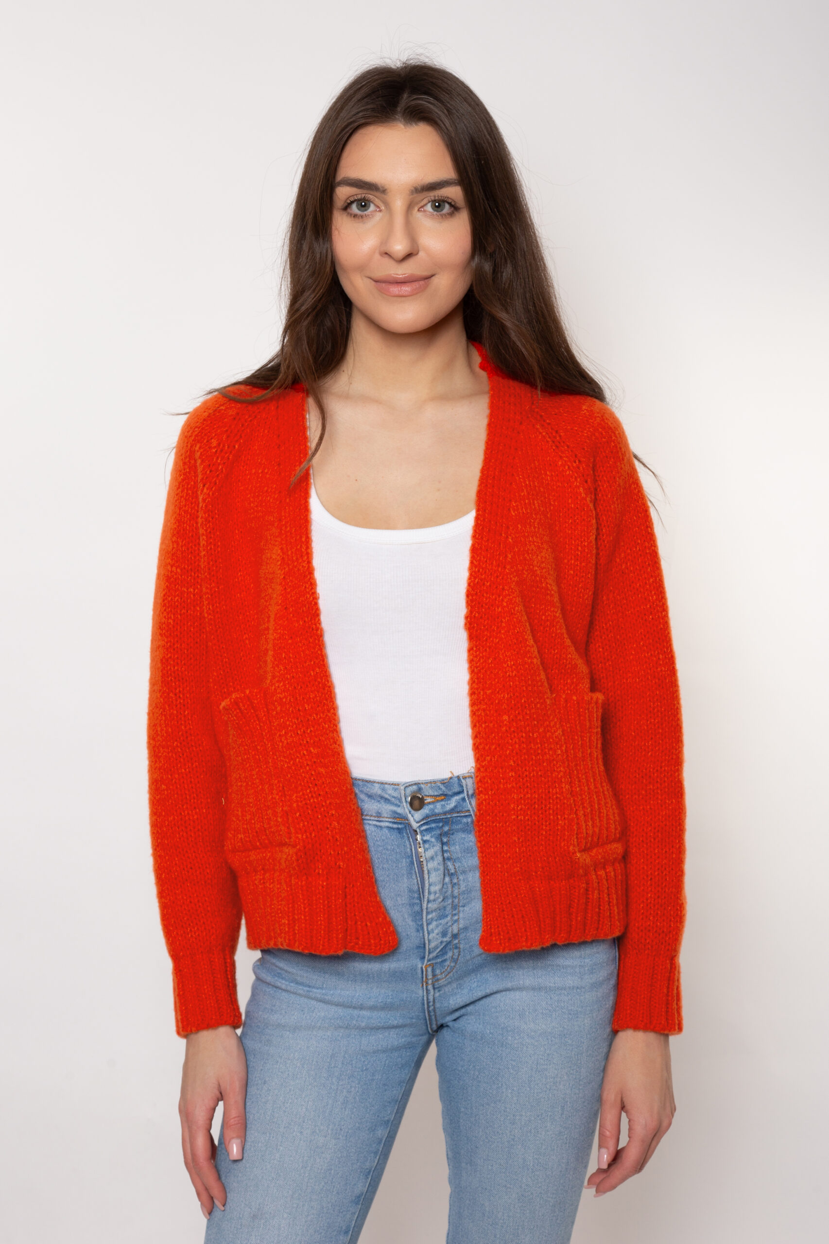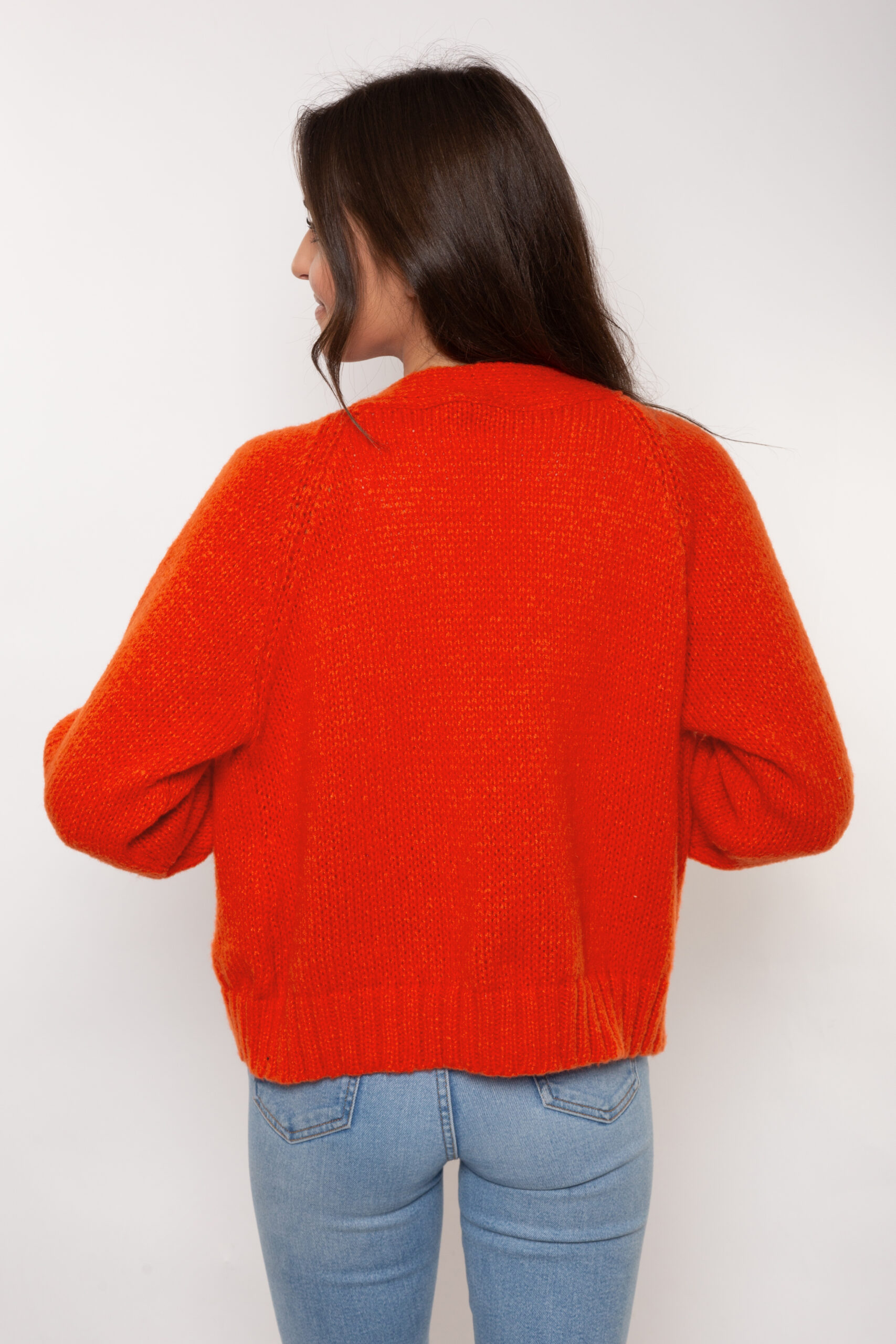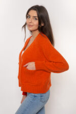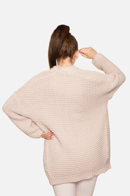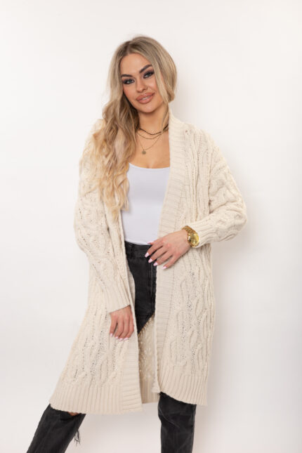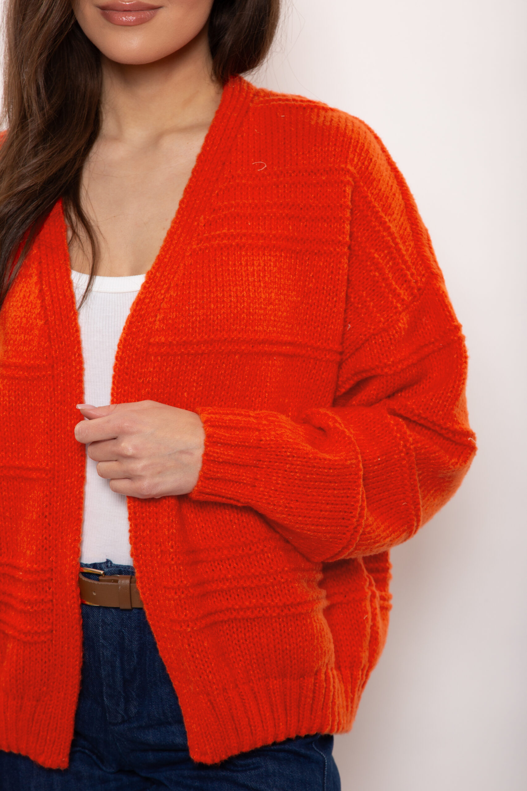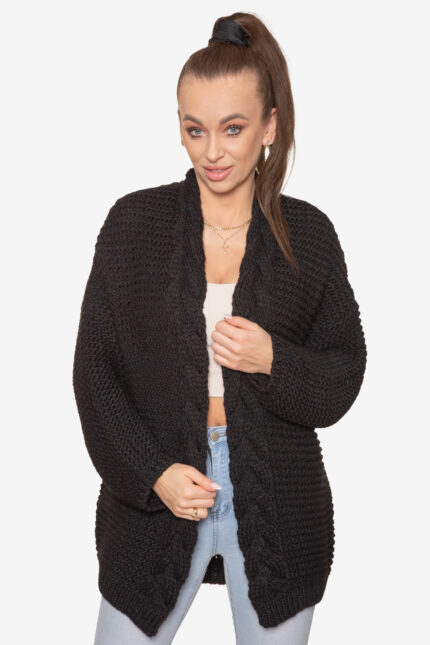 Kardigan rozpinany w serek z ozdobnym poprzecznym splotem w formie bomberki.