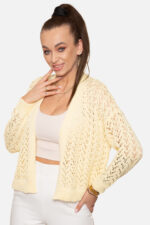 Sweter rozpinany w serek o splocie ażurowym