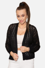 Modena Sweter rozpinany w serek o drobnym ażurowym splocie