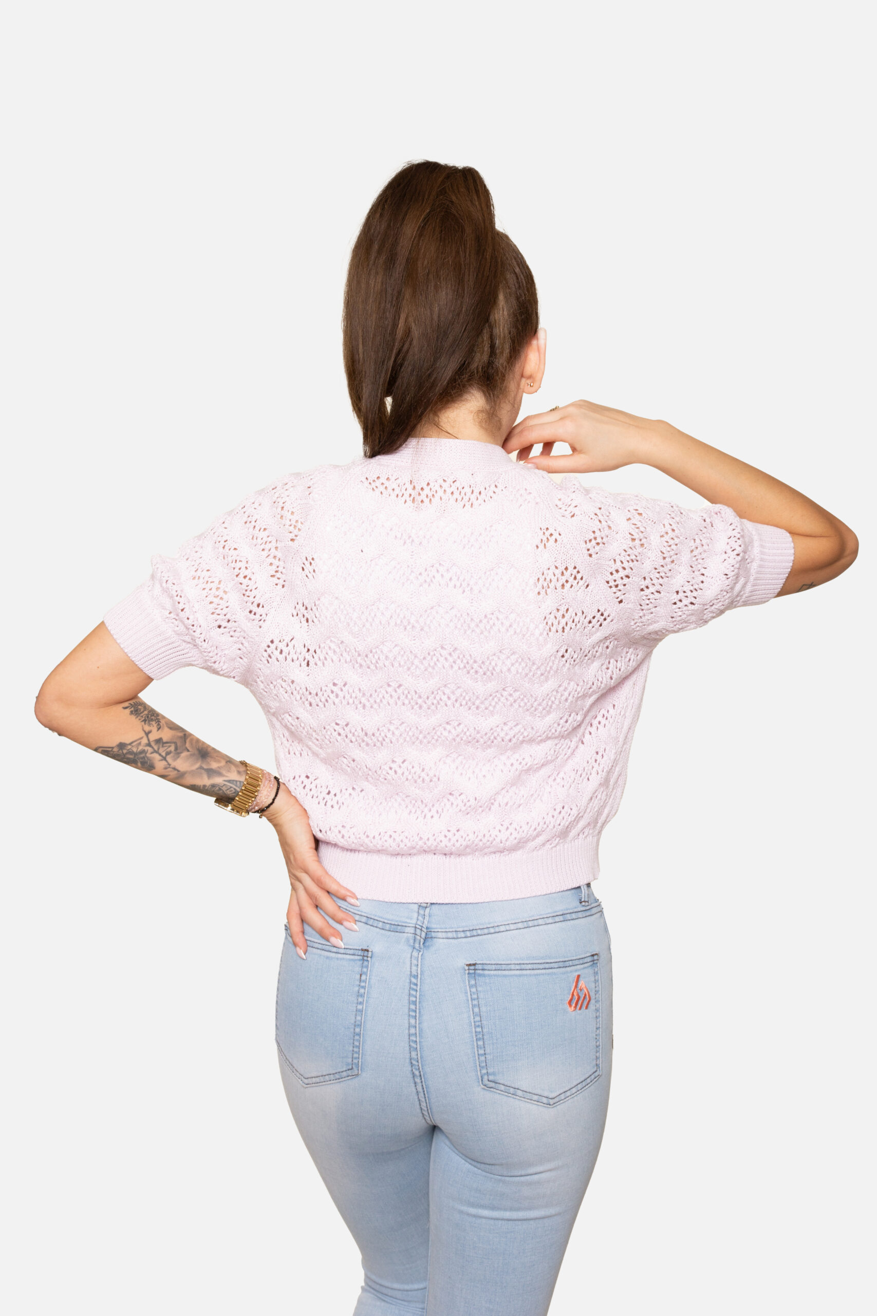 Modena Sweter rozpinany w serek o drobnym ażurowym splocie
