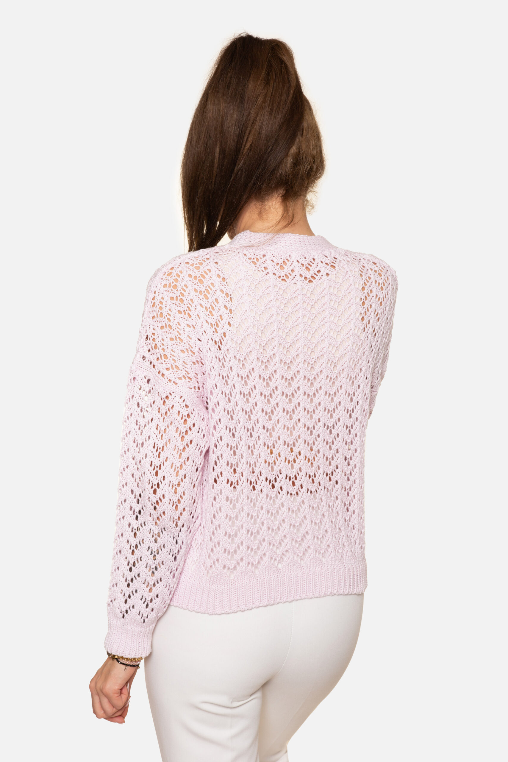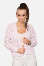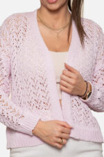 Modena Sweter rozpinany w serek o drobnym ażurowym splocie
